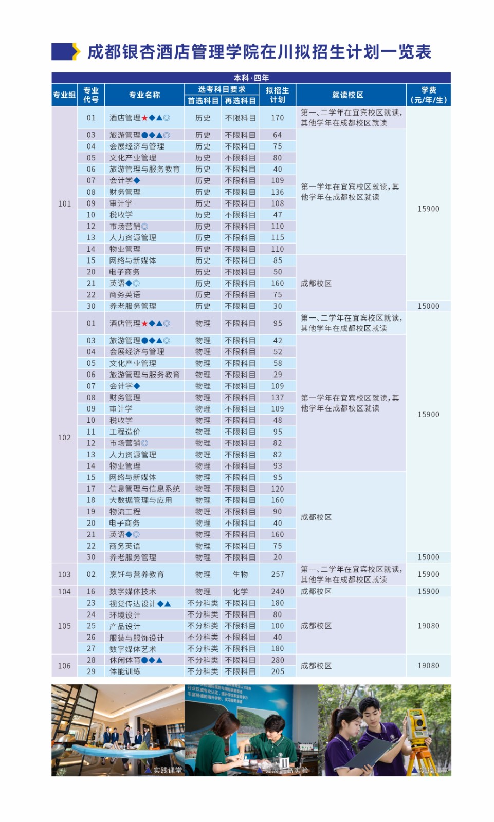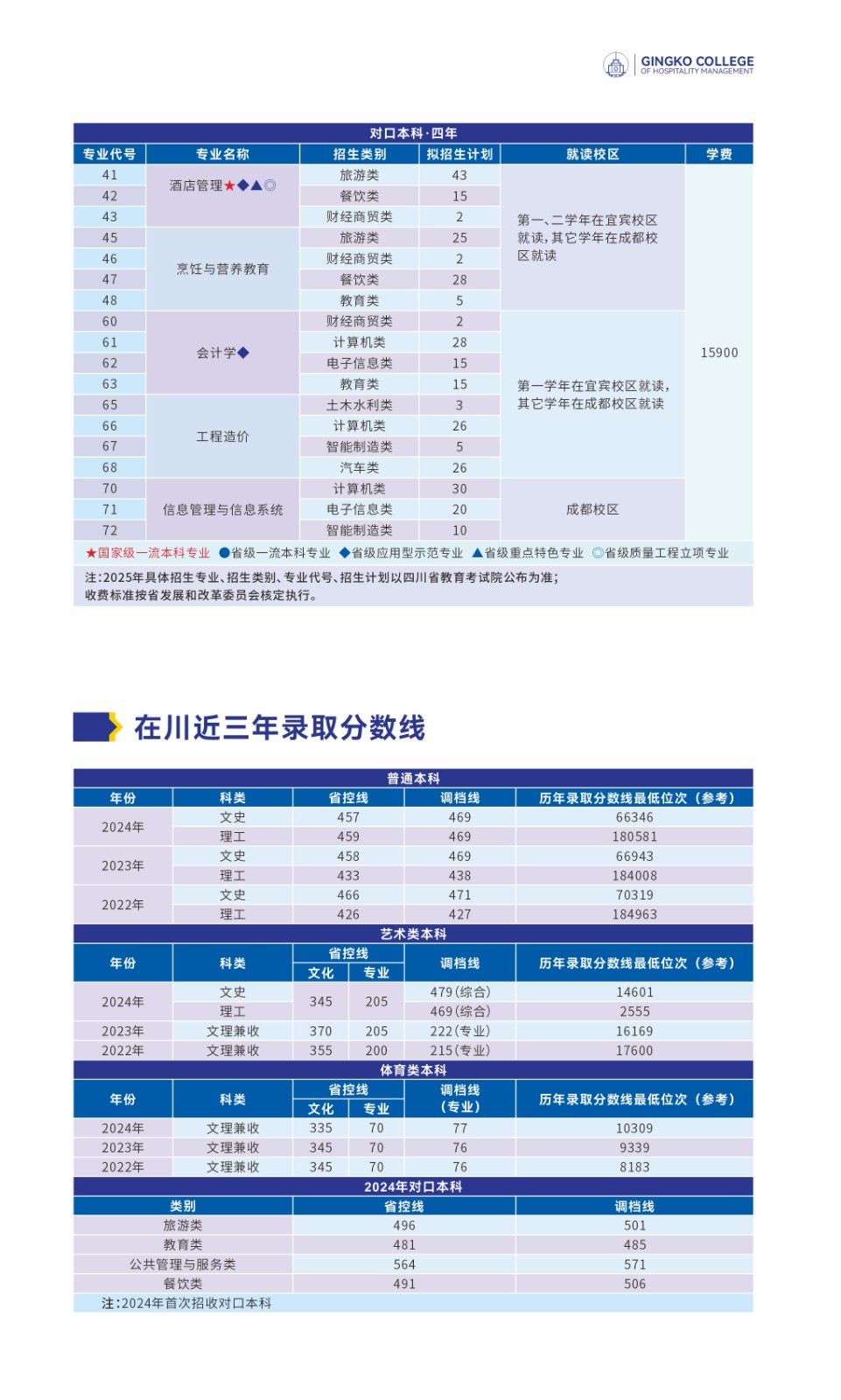 成都银杏酒店管理学院2025年招生简章(含在川招生计划)