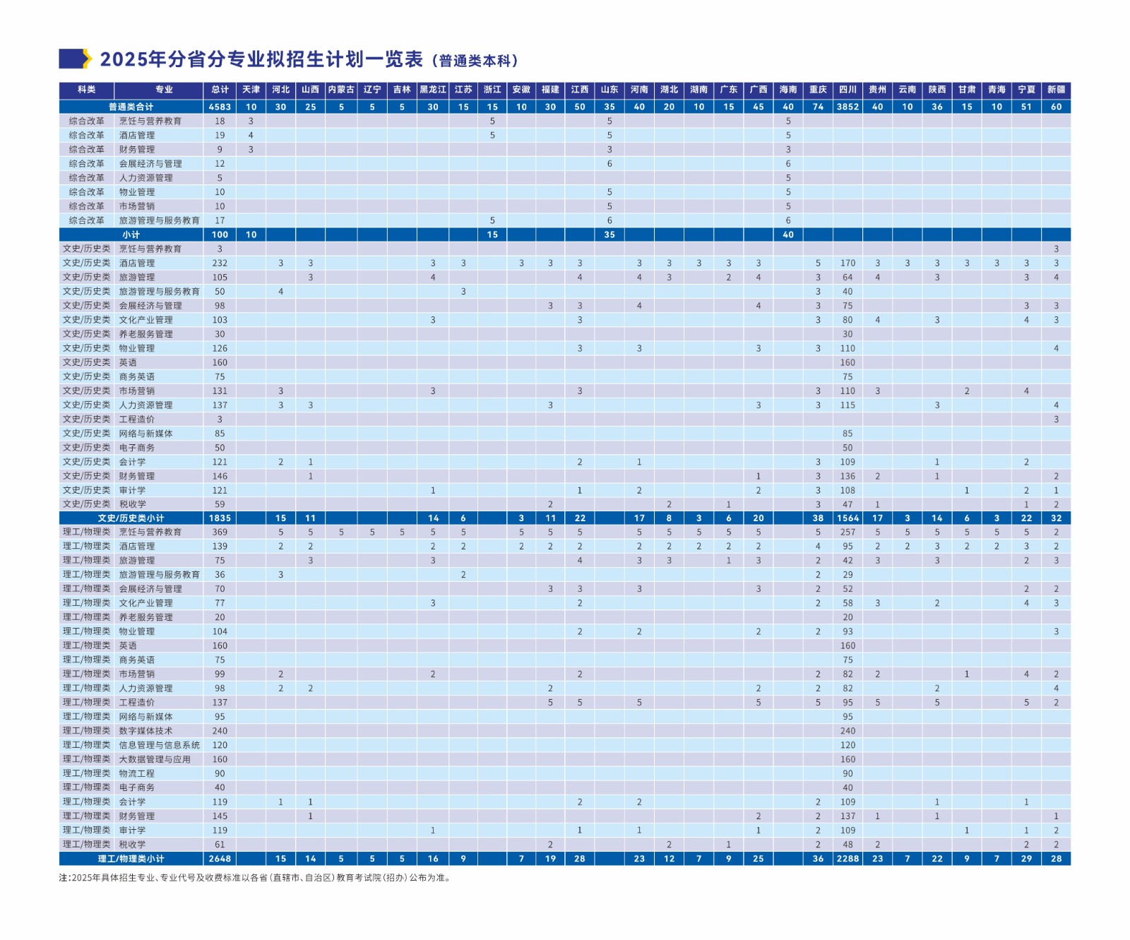 2025年分省分专业拟招生计划一览